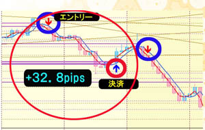 そこで、初心者がライントレードを行う上でウィークポイントともなる、エントリーを判断する際のわかりにくさを解消することができる、このイサムのインディケーターが大変有効に機能することになります。